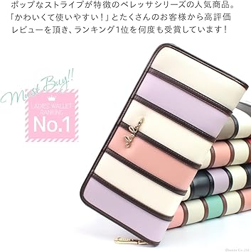 [クレリア] 財布 レディース 長財布 大容量 ストライプ ラウンドファスナー レディース財布 Bellezzaシリーズ 【CL-11177