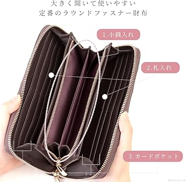 ・仕様:外側/フリーポケット×1、内側/札入れ×2、L字ファスナー小銭入れ(中仕切りあり)×1、カードポケット×12、フリーポケット×4