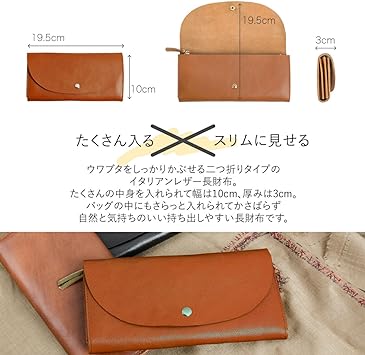 ・【こだわりのイタリアンレザー】全面にイタリアンレザー、大人の贅沢ロングウォレット。薄くて柔らかいイタリアンレザーを使用しているので、初めて使う瞬間から手に馴染みます。長く使用することでエイジングが進み、より魅力が深まります。