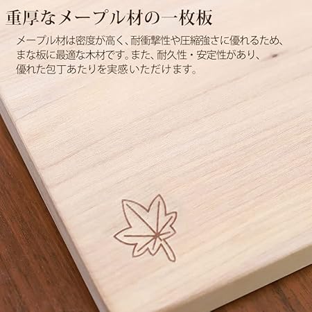 ・■商品説明 調理に欠かせない「まな板」。趣のある木製のまな板です。 重厚なメープル材の一枚板を使用していますので、安定して調理ができます。 メープル材は密度が高く、耐衝撃性や圧縮強さに優れるため、まな板に最適な木材です。 また、耐久性・安定性があり、優れた包丁あたりを実感いただけます。 まな板は包丁の相棒とも言うべき存在。木製のまな板ですと包丁の切れ味が落ちにくいです。 また、硬すぎず柔らすぎずちょうど良い硬さなので包丁の刃あたりがよく、疲れにくいです。