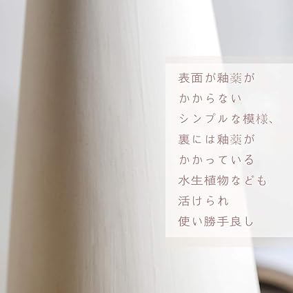 ・裏面に釉薬を施したので光沢を出し,液体のしみ出すのを防ぎます。水を注ぐと重さ約1キログラムで、安定感があって水栽培にも適用されます。干花はもちろん、水生植物、生け花、造花なども活けられ使いも素敵なんです。