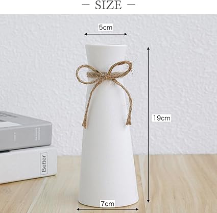 +kuRo 花瓶 フラワーベース 陶器 北欧 おしゃれ 大きい インテリア 花器 生花 ドライフラワー セラミックス (19cm, ホワイト