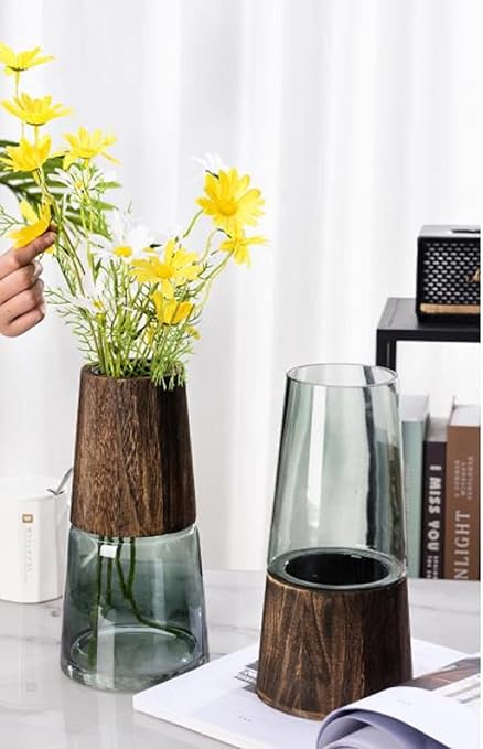 AIVAR 花瓶 大 フラワーベース ガラス 木製 北欧 透明 花器 シンプル クリア 北欧 透明 大きな インテリア 室内 大きい28cm