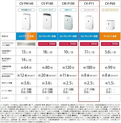 シャープ 衣類乾燥 除湿機 CV-P71-W 7.1L/日 プラズマクラスター 7000 8畳 コンパクトタイプ パワフル除湿 衣類消臭運転