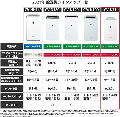 シャープ 衣類乾燥機 除湿機 7.1L / プラズマクラスター 7000 スタンダード 8畳 / 2021年モデル ホワイト CV-N71-