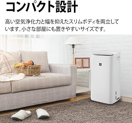 衣類乾燥もできる空気清浄機。それが「除加湿空気清浄機」 ●衣類乾燥・除湿 【スイングルーバーですばやく乾燥】スイングルーバーが前方に風を集中させ、衣類をすばやく乾燥。洗濯物が乾きにくい雨の日もカラッと仕上げます。【プラズマクラスターで清潔な部屋干し】部屋干し時に気になる生乾き臭をプラズマクラスターがスポット消臭。さらに付着カビ菌の増殖も抑制し、タオルや衣類を清潔に乾燥します。【除湿でカラッと快適】余分な湿気を除去して快適空間に。ジメジメした季節に気になる浮遊カビ菌も除菌します。 ●加湿 【乾燥が気になる季節にしっかり加湿】乾燥が気になる季節には、しっかり加湿。のどや鼻を乾燥から守ります。しかも、1日24時間使い続けても気にならない電気代です。【キレイな水で加湿、Ag⁺イオンカートリッジ】トレーに簡単装着できる「Ag⁺イオンカートリッジ」で、トレーのぬめりやニオイの原因となる水中の菌を抑制。1年に1回の交換でキレイが続きます。【抗菌・防カビ加湿フィルター】抗菌・防カビ加湿フィルターで清潔に加湿します。<交換の目安:5年> ●空気浄化 【プラズマクラスター25000搭載】シャープ独自の空気浄化技術、プラズマクラスター25000を搭載しています。【花粉にもプラズマクラスター】「静電気除去」花粉などの微小な粒子の付着を抑制。プラズマクラスターは「+」と「-」両方の静電気を除去できるので、 花粉や微小な粒子が壁などへ付着するのを抑制します。「付着花粉」アレル物質の作用も抑制。外から持ち込みやすい花粉。プラズマクラスター空気清浄機なら、フィルターで取れない付着した花粉アレル物質をしっかり抑制します。【遠くのホコリも素早く吸じん、「スピード循環気流」】プラズマクラスター空気清浄機の特長である、お部屋全体に風の流れが素早く行き渡るスピード循環気流。遠くのホコリも引き寄せて大きな背面全体の吸込口でパワフルに吸引します。プラズマクラスターイオンが静電気を除去しながら、効率良く集じんします。【集じん・脱臭一体型フィルター】脱臭機能と集じん機能がひとつになった2年間交換不要のフィルターなので、お手入れや交換が簡単に行えます。【集じん・脱臭一体型フィルター】脱臭機能と集じん機能がひとつになった2年間交換不要のフィルターなので、お手入れや交換が簡単に行えます。【プラズマクラスター空気清浄機本体で、「PM2.5」への対応】0.1~2.5µmの粒子を99%キャッチします。 ●使いやすさ 【多機能なのに、コンパクトサイズ】高い空気浄化力と幅を抑えたスリムボディを両立しています。寝室、子ども部屋などの小さな部屋にも置きやすいサイズです。【キャスター付きで移動でカンタン】キャスター付きなので、カンタンに移動可能。様々な場所に移動して使えます。【パネルを外さずにお掃除OK】プレフィルターについた大きなホコリは、後ろパネルをつけたまま、掃除機で吸い取るだけ。簡単にお掃除ができます。【使い捨てプレフィルター】後ろパネルに貼って、汚れたら簡単にはがして交換。ペットの毛やタバコのヤニなど、面倒な汚れ対策に便利です。(3枚同梱)【除湿/加湿一体型トレー】除湿/加湿一体型トレーなので省スペースで「除湿」「加湿」を実現しました。それぞれ取り外しができるのでお手入れもカンタンです。【給水しやすい】2階やシンクから離れた部屋でも、ヤカンなどでカンタンに給水できます。【おやすみ運転】就寝時におすすめの運転です。モニターの眩しさと風量を抑えて静かに運転します。(除湿空清/衣類乾燥モード選択時は使用できません。)【花粉運転】強めの風量自動運転で花粉やホコリなどをすばやくきれいにします。【3つのセンサーで賢く運転】ニオイ、湿度、温度の3つのセンサーで賢く運転します。【きれいモニター】お部屋の空気の汚れをランプでお知らせします。【使いやすさにこだわった操作部】「モードボタン」を押すだけで簡単に運転モードの切り替えができます。また、「デジタル湿度モニター」には、現在のお部屋の湿度(目安)を1%刻みでわかりやすく表示します。