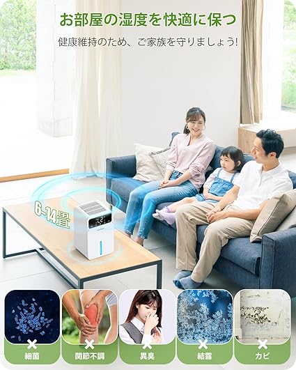 ・【強力除湿&大容量】1500mlの水タンクが付いたので、一日何回水捨てする必要はありません。強力な除湿能力で部屋の湿気を一気に取り除きます。抜群な除湿効果で部屋の湿度が素早く下げられます。湿度が高い梅雨時期や夏の時期に大活躍。梅雨の時期のお部屋干しの強い味方です。