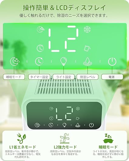 ・【睡眠モード&自動停止機能】「低除湿」・「高除湿」・「睡眠モード」3つモード切替可能。睡眠中でも音が気にならない、39dbの静かな動作音は睡眠に影響を与えません。前に水位窓があり、水量が一目瞭然で確認できます。水が溢れないようにほぼ満水になったら除湿乾燥機は自動的に運転停止になり、ランプが赤く点滅になります。夜でも安心して使用できます。