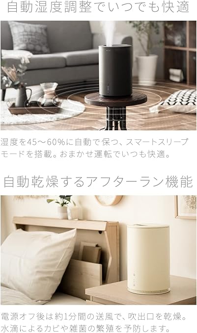 ・ オート調整機能搭載 | 湿度を45~60%に保つスマートスリープ機能を搭載しており、自動で快適な湿度になるよう運転します。