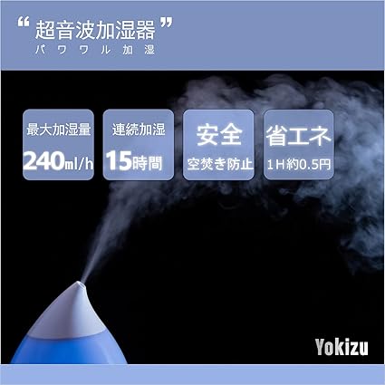 Yokizu 加湿器 卓上 アロマ 大容量 超音波式 しずく型 6-9畳 朝まで連続稼働 LEDライト 寝室 リビング 静音 空気清浄 乾燥