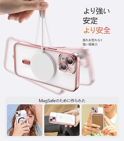 ・【MagSafeに対応·強磁力】このアイホン15ケースを使用することで、より高速かつ便利なワイヤレス充電を体験できます。38個のN52磁石が内蔵されており、通常の磁気ケースよりも磁力が10倍強力です。自動的にMagSafe充電器に合わせることができ、ケースを外さずに本来の充電スピードを体験できます。すべてのMagSafeアクセサリに対応できます。