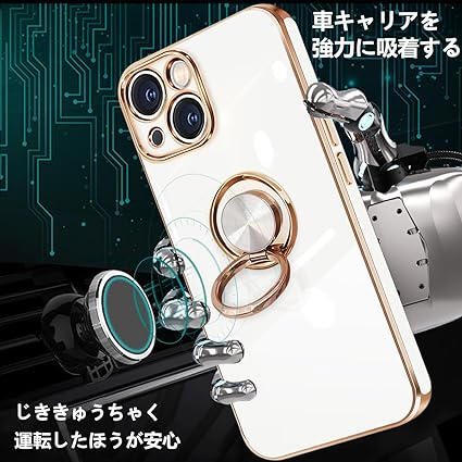 ・【車載スタンド対応&ストラップ穴付き】内部には金属が内蔵され、マグネット式車載スタンドに対応。*特別ヒント:リング部分は金属ですので、ワイヤレス充電できません。ケースの側面にはストラップホールを搭載しているので、お好きなストラップを付けられ、落下防止にも効果的です。