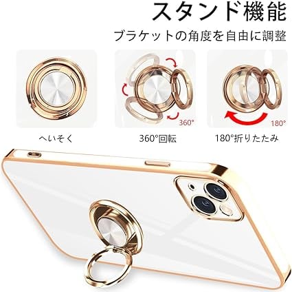 iPhone 15 ケース リング付き イフォン15 リング TPU カバー 全面保護 耐衝撃 スマホケース 360°回転 スタンド機能 携