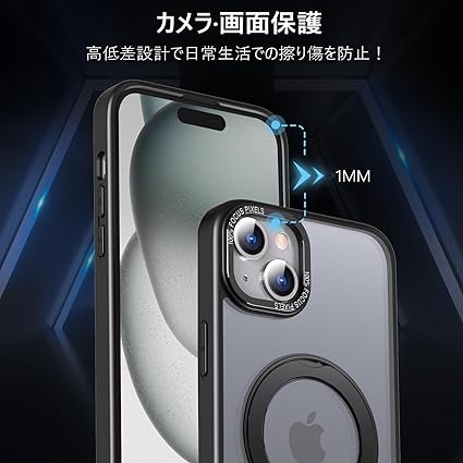 ・【Magsafe対応·多機能】iPhone 15 用 ケース(両眼カメラ、6.1インチ)。ワイヤレス充電やモバイルバッテリーなど全てのMagSafe用アクセサリーにもばっちり対応しています。こちらのアイホン15用ケースを使用すれば、充電ケーブルを抜き差しする必要がなくなり、利便性を体感していただけます。