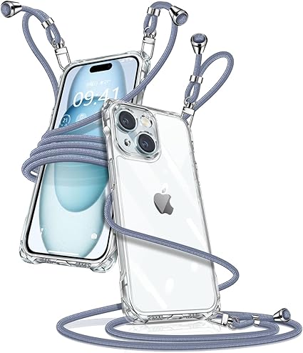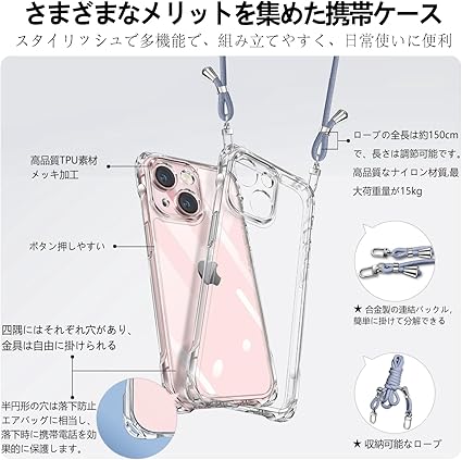 iPhone 15 ケース クリア ショルダー アイフォン15 スマホケース iPhone15 カバー 肩掛け 斜めかけ 縄掛けケース 透明