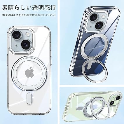 iPhone 15 適用 ケース Magsafe アイフォン15 カバー 360°回転スタンド Uovon スマホケース アイホン15 携帯
