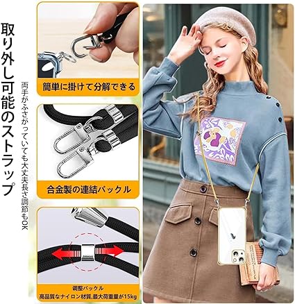 ・【便利で実用的なロープ付き携帯ケース】ショルダーストラップ付き、ストラップを垂直または水平にリンクできます、調節可能、取り外し可能、電話ケースの特別な四隅のデザインにより、ストラップを垂直または水平にリンクできます。このアクセサリーはファッションだけでなく、通常のストラップよりも快適で実用的です。 作業、旅行、出張、ショピング、散歩、コンサート、パーティーに最適です。手を離しても、携帯電話を携帯できます。