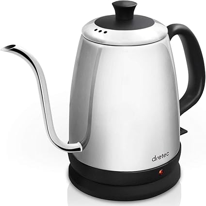 ドリテック(dretec) 電気ケトル 1.0L 900W 高出力 ステンレス コーヒー ドリップ ポット 細口 シルバー