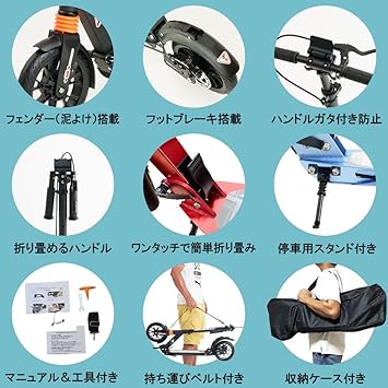 ・【子供から大人まで乗れる!】下段固定ロックが78cm、そこから84㎝、94㎝、101㎝と高さが3段階に調節できるため、身長127㎝のお子様から大人まで乗車することができます。お子様の成長に合わせて高さを調整、家族みんなで兼用などもオススメです。通勤・通学、近所のお買い物やお散歩など、ちょっとした移動にもとても便利です。