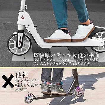 ・【高さ3段階調節】:スクーターは85cm、93cm、100cmの3段階の高さ調節が可能で、子供から大人まで幅広くお使いいただけます。キックスクーターは耐久性があり、錆びないアルミ合金製で、風や雨を恐れません。
