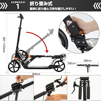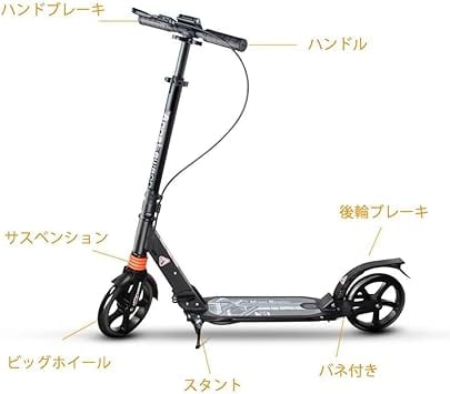 ・安定した滑走を実現:ハンドブレーキとフットブレーキがあるので安心。サスペンションが前後に入っていて乗り心地がいい。ブレーキ装置を備えており、雨の日や下り坂でも十分な制動力を発揮。行楽やちょっとしたお使い等に重宝する折りたたみキックボードです。