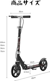 ・【4段階高さ調節】78、94、99、104cmの4段階の高さに調整できます。子供用としても大人用としても、お子様の成長にあわせて乗り始めからキックボードを卒業するまで楽しく遊べます!幅広い年齢層に適用しています。自分用はもちろん、プレゼントとしても最適です。安心に快適な走りを体感し、何年にわたっても使用に耐えます。