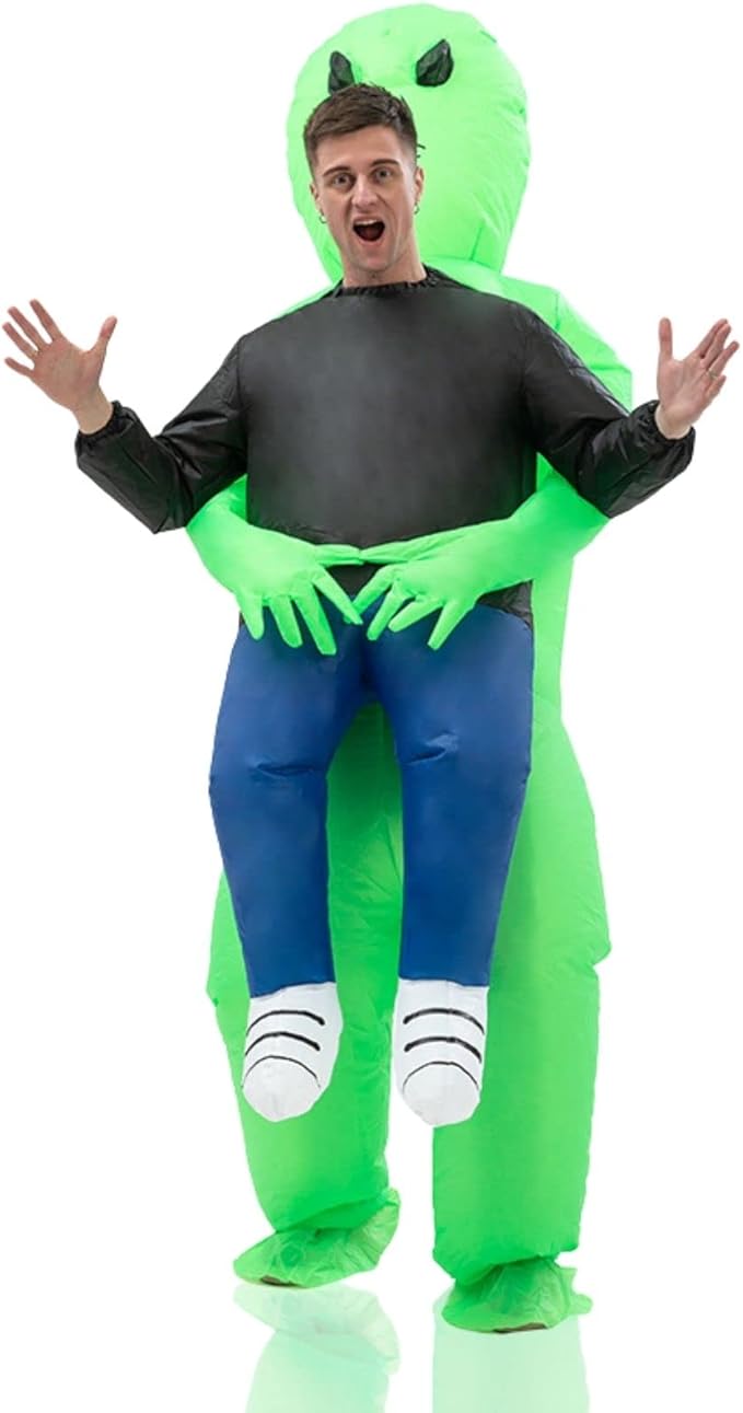 ・・宇宙人に囚われたような見た目で斬新で面白い、空気で膨らませるおもしろコスチュームです!エイリアンのエアコスで変装した大きな体は注目されること間違いなし!たくさん人がいても目立ちます!