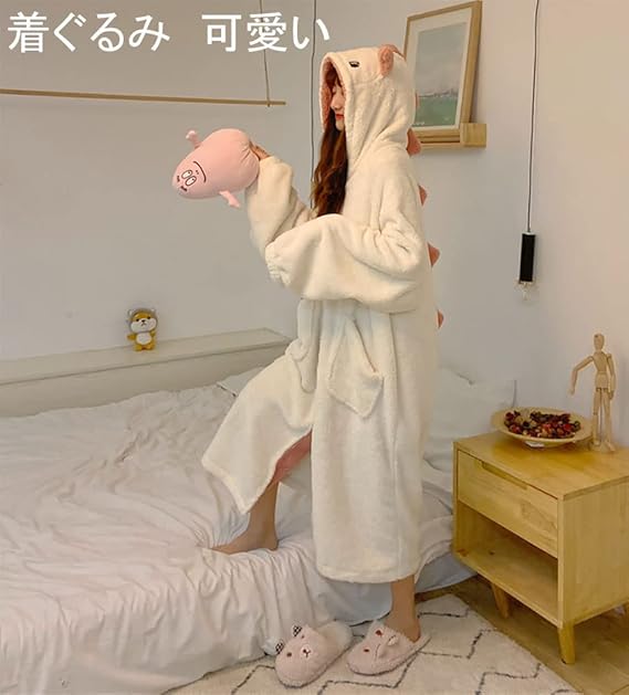 ・『大人気の可愛いデザイン』ふわふわ暖かい動物耳付きのレディースパジャマが登場しました。かわいさ満載のルームウェアなので、お部屋でのリラックスウェアとしてはもちろんのこと、フォトジェニックなアイテムとしても使えます。サイズ:着丈100cm バスト144cm 袖丈71cm