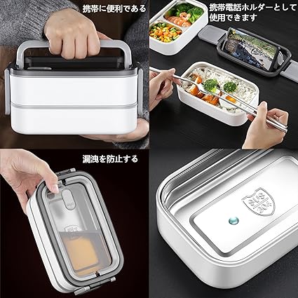 ・[漏れ防止設計] : この熱式ランチボックスのシリコンシールは、密閉して漏れを防止し、新鮮さを確保します。 断熱ランチボックスのレイヤーはしっかりとつながっており、スープや臭いが溢れるのを防ぎます。 数回使用すると滑らかになります。