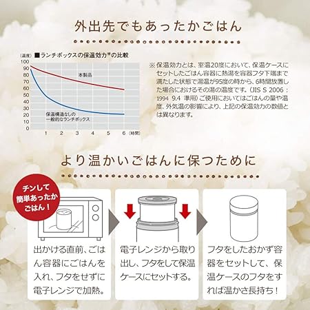 ・材質:保温ケース/ステンレス鋼(アクリル樹脂塗装)、ご飯容器フタ/PP(中材:発泡PP断熱材)、保温ケースフタ・リング・おかず容器本体・ご飯容器本体/PP、おかず容器フタ/シリコーンゴム