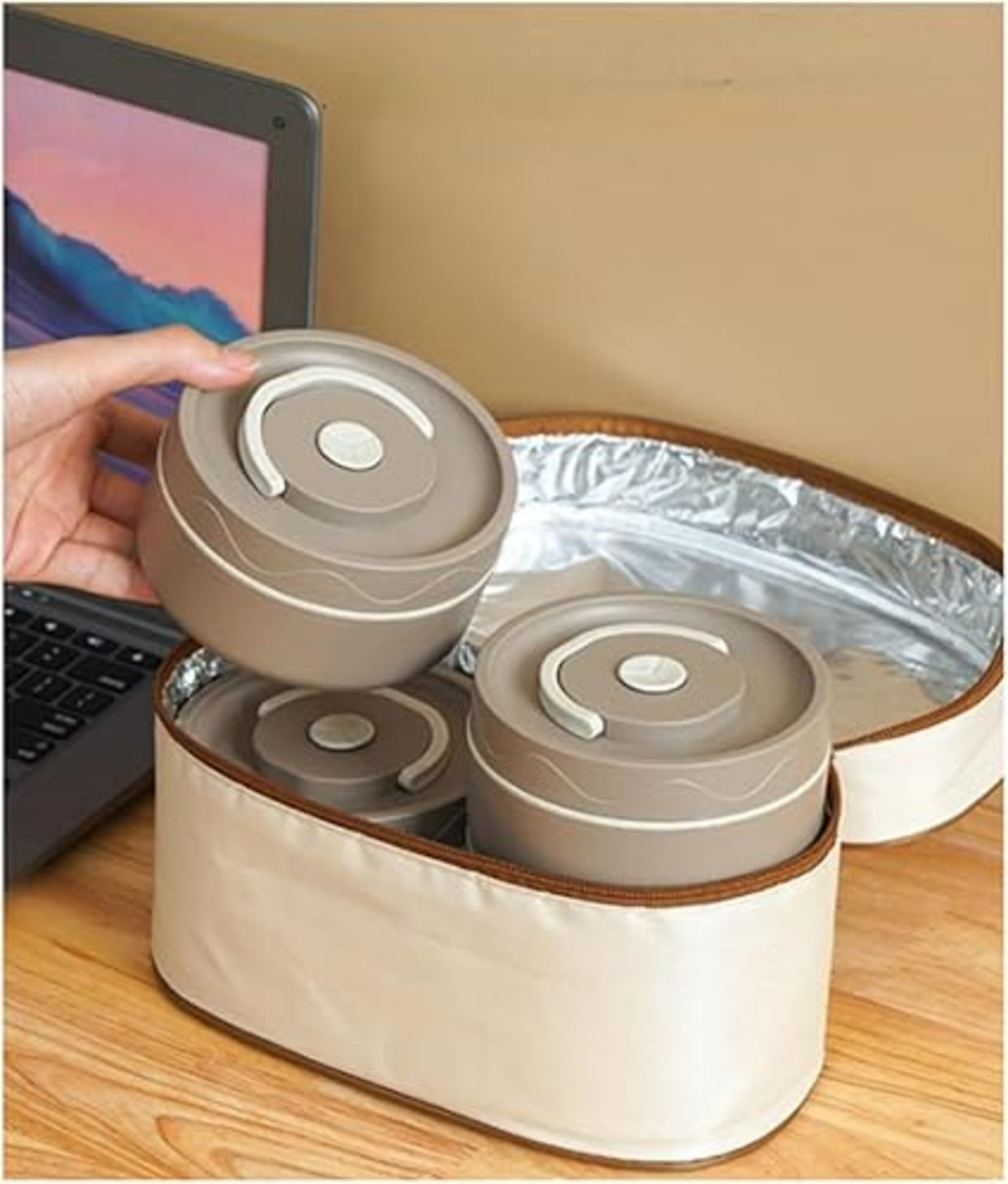 ・【ハンドルデザイン】断熱弁当箱の蓋の上部には持ち運びに便利なハンドルが付いており、持ち運びや移動に便利で、使用後にリセットできます。