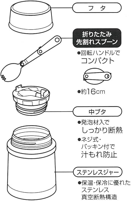 ・素材・材質:本体=ステンレス鋼 中フタ=ポリプロピレン スプーン=ステンレス