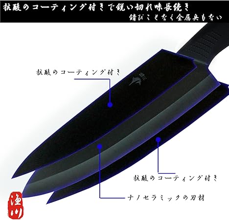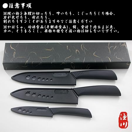 漁川 包丁セット 【3本セット】 【黒のセラミック】 【シェフナイフ ペティナイフ パン切りナイフ】 超軽量 錆びない 牛刀 皮むき包丁 フ