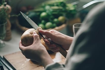 ・【ペティナイフは、 「小さな包丁」と訳してください。】角切り、せん切り、ささがけ、皮むき。料理は、細かい作業の連続です。肉の塊を切り分けたり、キャベツをふたつに割ったりするのは苦手ですが、作りたい献立のほとんどはペティ1本でも大丈夫です。