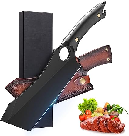 Utaki 肉切包丁 菜切り包丁 フルタング構造 刃渡り155 アウトドアナイフ キャンプナイフ 黒のTiNコ一ライソブ仕上げ 専用革製鞘付