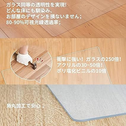 ・床暖房に対応 冷蔵庫マット:耐熱温度は-35℃~+120℃で床暖房にも対応!四隅はお子様でも怪我をしないよう側面は滑らかに加工しています。で女性でも簡単に設置できます!マットの表面には、エンボス処理が施されています。冷蔵庫マットとして使用するときは、滑り止め効果があります。底面はツヤツヤにすることで、床にしっかり吸着すると、ズレにくくなっています。