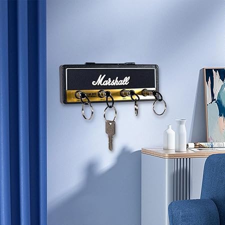 マーシャル風キーラックは、クラシックな外観と特徴的なロゴを持ち、簡単な取り付けや多目的な収納機能を備え、音楽愛好家やファッション愛好家の部屋におしゃれな雰囲気を提供します。