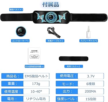 ・【セット内容・安心1年サポート】EMS腹筋ベルト用マシン*1 、EMS腹筋ベルト*1、装水器*1、Type-C充電ケーブル*1、日本語取扱説明書*1。1年の安心保証が付いており、初期不良や新品故障の場合など、お気軽に連絡していただければ、24時間内に対応致します。