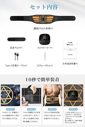 ・【パッケージ内容&品質保証】パッケージ内容:ems腹筋ベルト*1、コントローラー*1、Type-C充電ケーブル*1、延長ベルト*1 、スプレー容器*1、日本語説明書*1。1年間の安心保証が付いており、初期不良や新品故障の場合など、お気軽に連絡していただければ、24時間内に対応致します。
