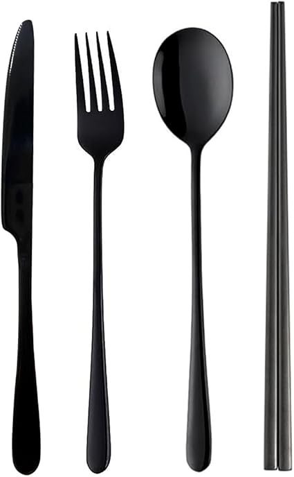 Hive Mind 北欧風 カトラリーアソートセット スプーン フォーク ナイフ お箸 4本セット (ブラック)