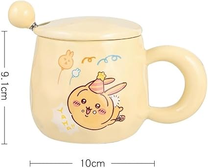 ちいかわ マグカップ うさぎ カップ ハンドル付き カップの蓋付き スプーン付き 陶磁器 保温 朝食カップ コーヒーカップ 創意デザイン 萌