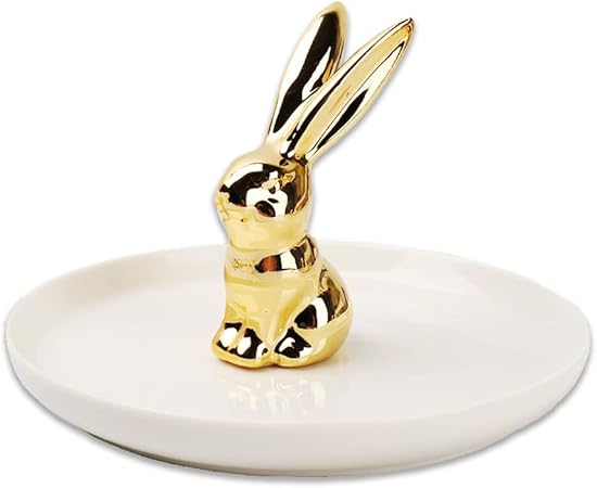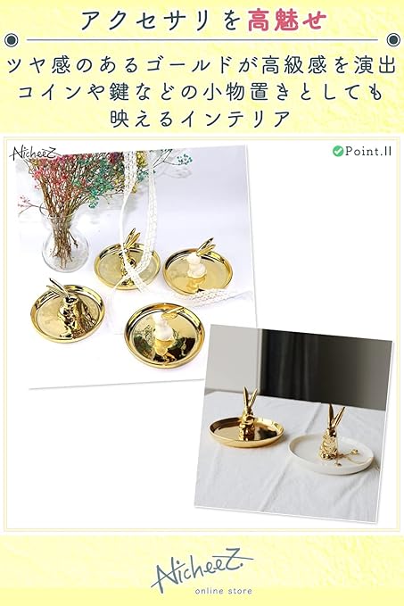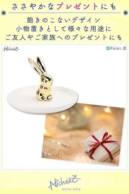 Nicheez アクセサリー トレイ ジュエリー 小物 置き ウサギ ゴールド (ホワイト&ゴールド)