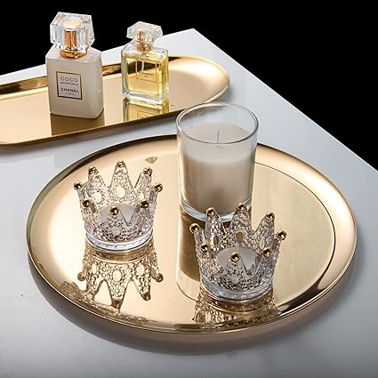 IMEEA トレイ ステンレストレイ アクセサリー置き 丸型28cm インテリア 小物置き ゴールド