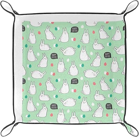 かわいい ウサギ 卵 アクセサリートレイ 収納トレイ 小物入れ ジュエリー収納 ジュエリートレイ インテリア 置物 皮革製 正方形 20.5