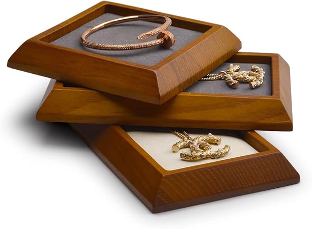 ・【高品質素材】高品質の無垢材と貴重なマイクロファイバーを使用しており、木の質感は非常に透明で、古い木材よりも滑らかで頑丈です。貴重なマイクロファイバーは、ジュエリーに傷や結び目がつくのを防ぎます。木製のジュエリートレイは、ベルベットのジュエリートレイよりも安定しており、耐久性があります。
