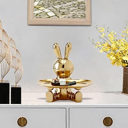 Besga 皿を上げるウサギの置物 キー収納トレイ 鍵置き 小物収納 卓上置物 収納トレイ 動物像 彫刻装飾 玄関 ペットサイトテープル お