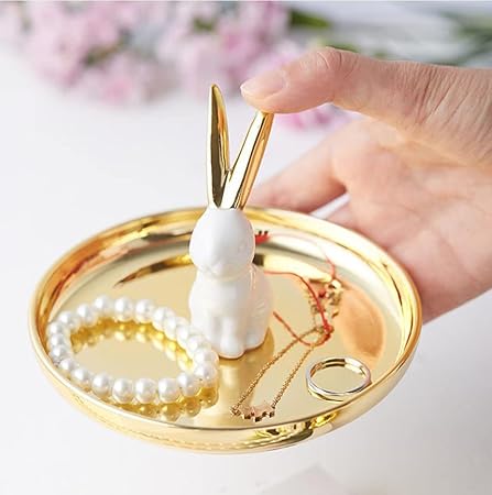 ・可愛いうさぎのオブジェのついた高級感のあるアクセサリートレイです。
