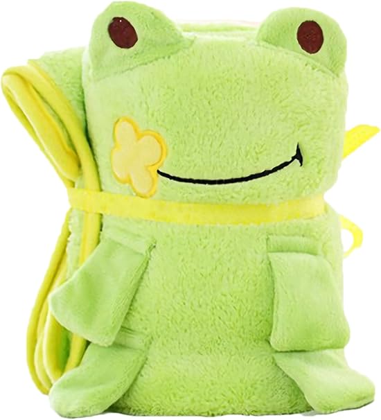 Azrte(アズルテ) 大判 アニマル ブランケット あったか フリース りぼん 巻き 可愛い ひざ掛け 枕 かえる
