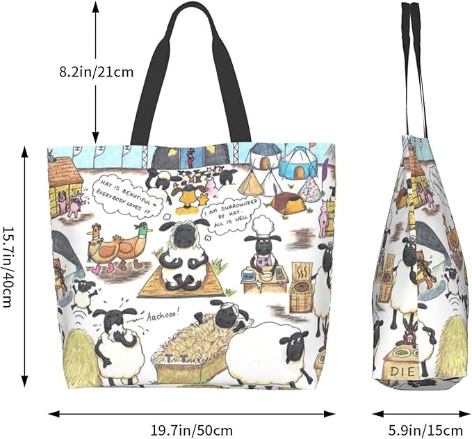 人気 グッズ エコバッグ 肩掛け 買い物バッグ ひつじ 羊 ショーン 2 大容量 厚手 頑丈 軽量 洗える コンパクト 携帯便利 おしゃれ手