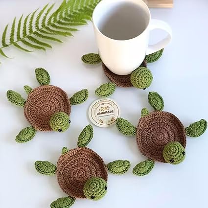 かぎ針編みのコースター,ホーム かわいいカメの断熱プレースマット - ポータブル羊コースター 職場、レストラン、コールド&ホットドリンクカッ